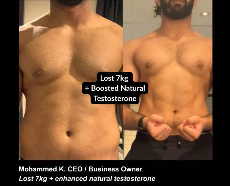 Approach: We implemented a progressive strength-focused training program designed to stimulate androgenic response, alongside macronutrient optimization and micronutrient improvements (zinc and magnesium). I also helped him optimize his schedule, removing wasted time and focusing on recovery and energy management.